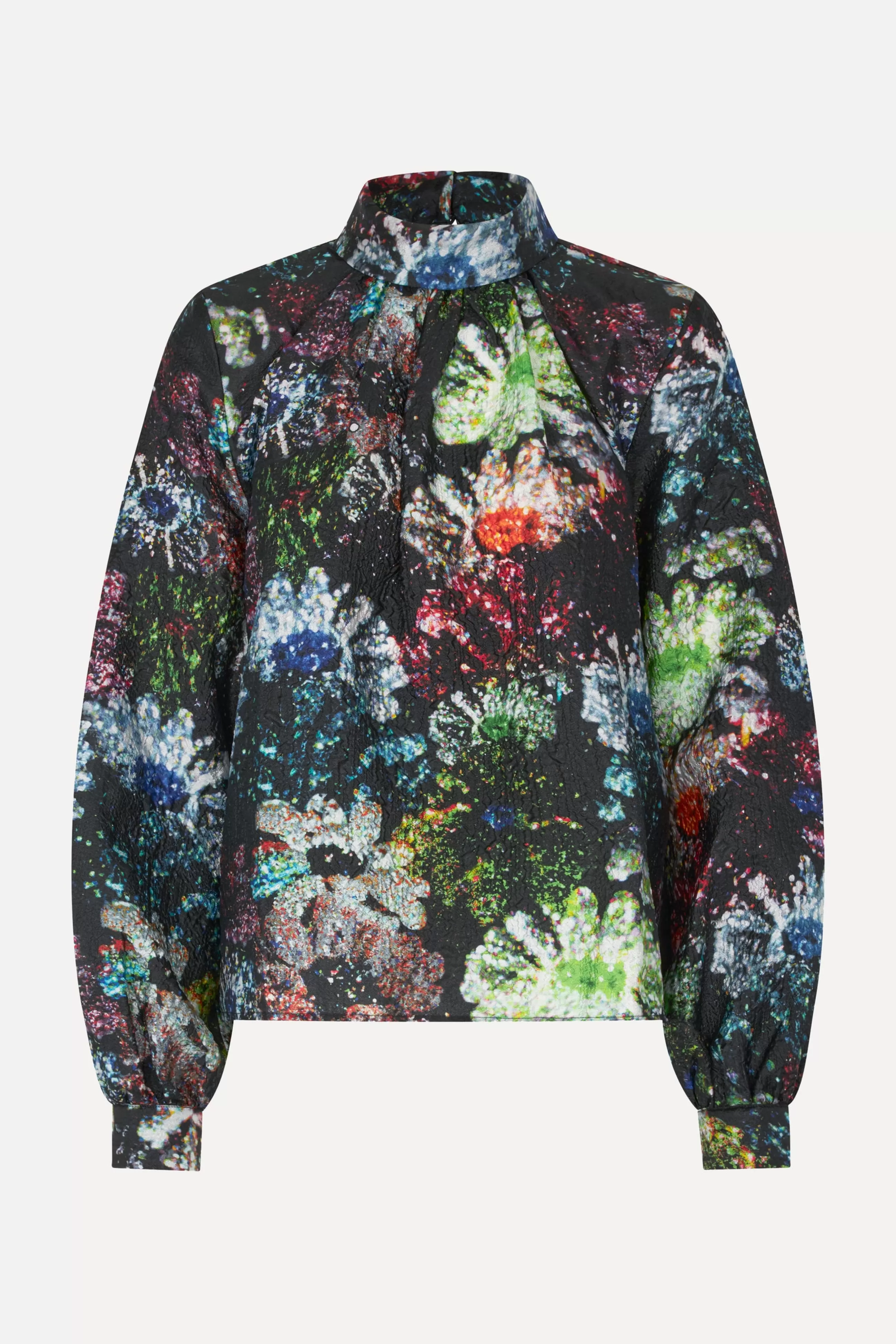 Langærmet top med rullekrave, lange ærmer med manchetter og farverigt blomstermønster. Afslappet pasform.70% Genanven…