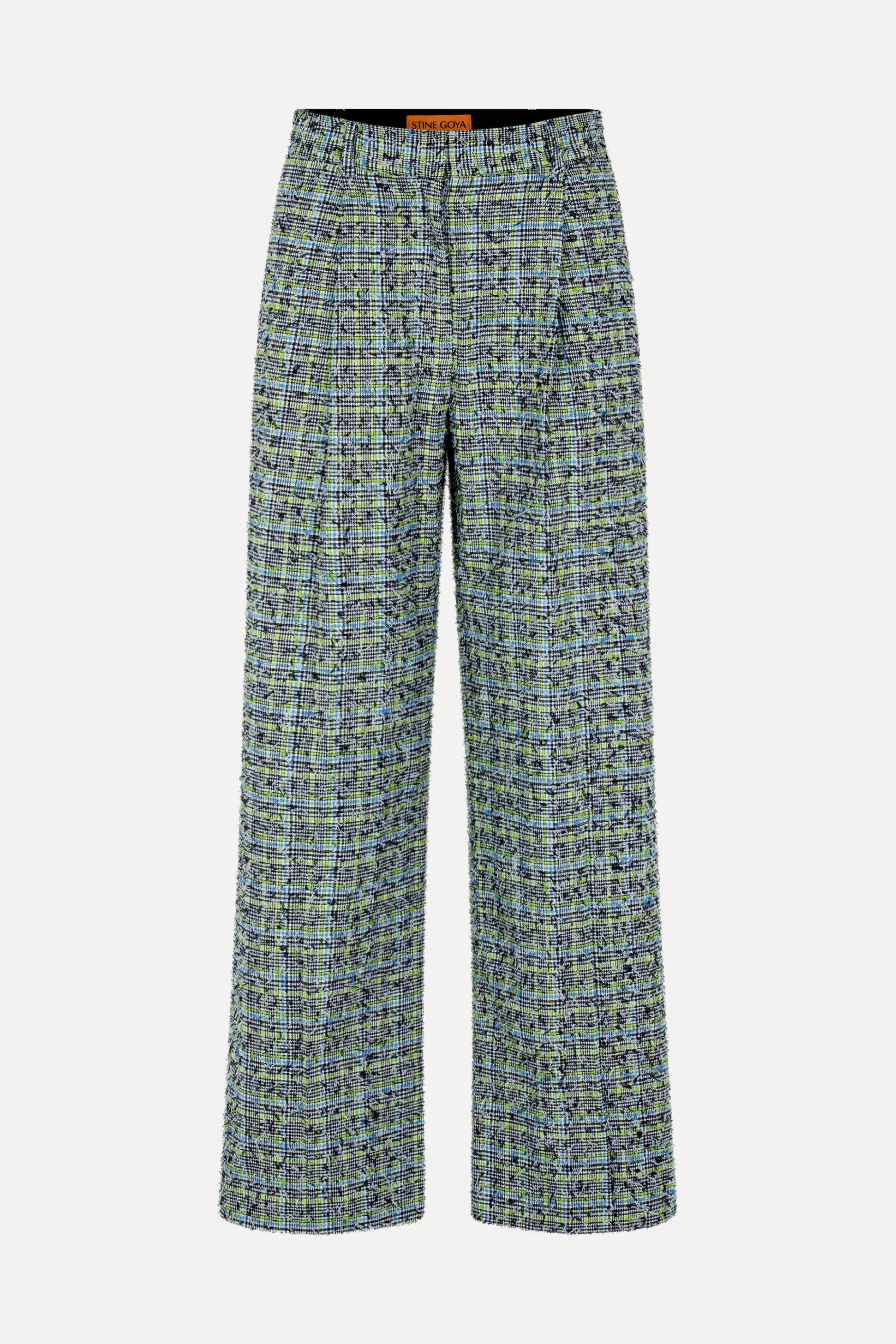 Afslappede bukser i en struktureret kvalitet med tern. Detaljeret med vide ben, linning med læg og sidelommer. Brug dem med den matchende Orly Vest eller Phoenix Skjorte for et fuldt look.