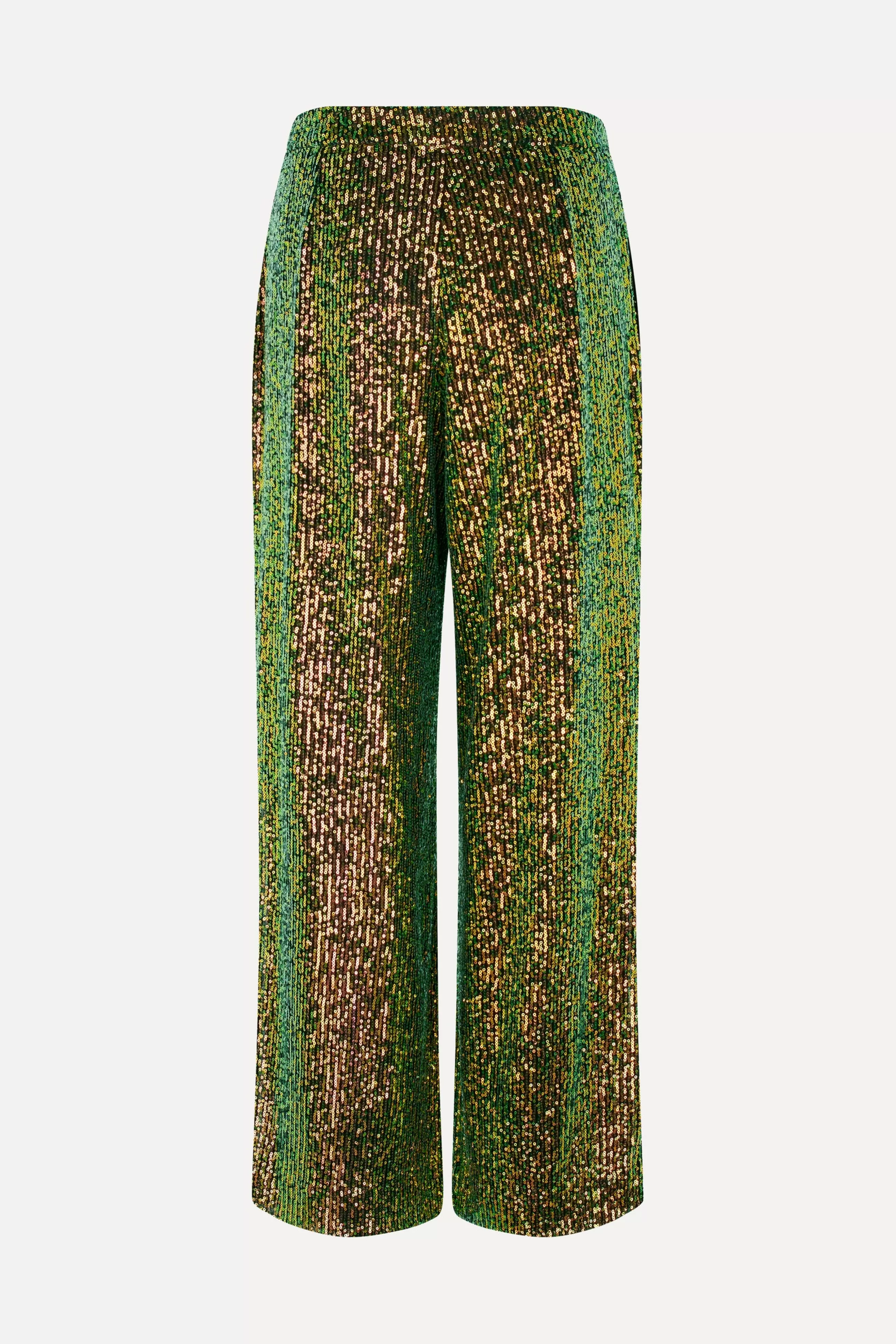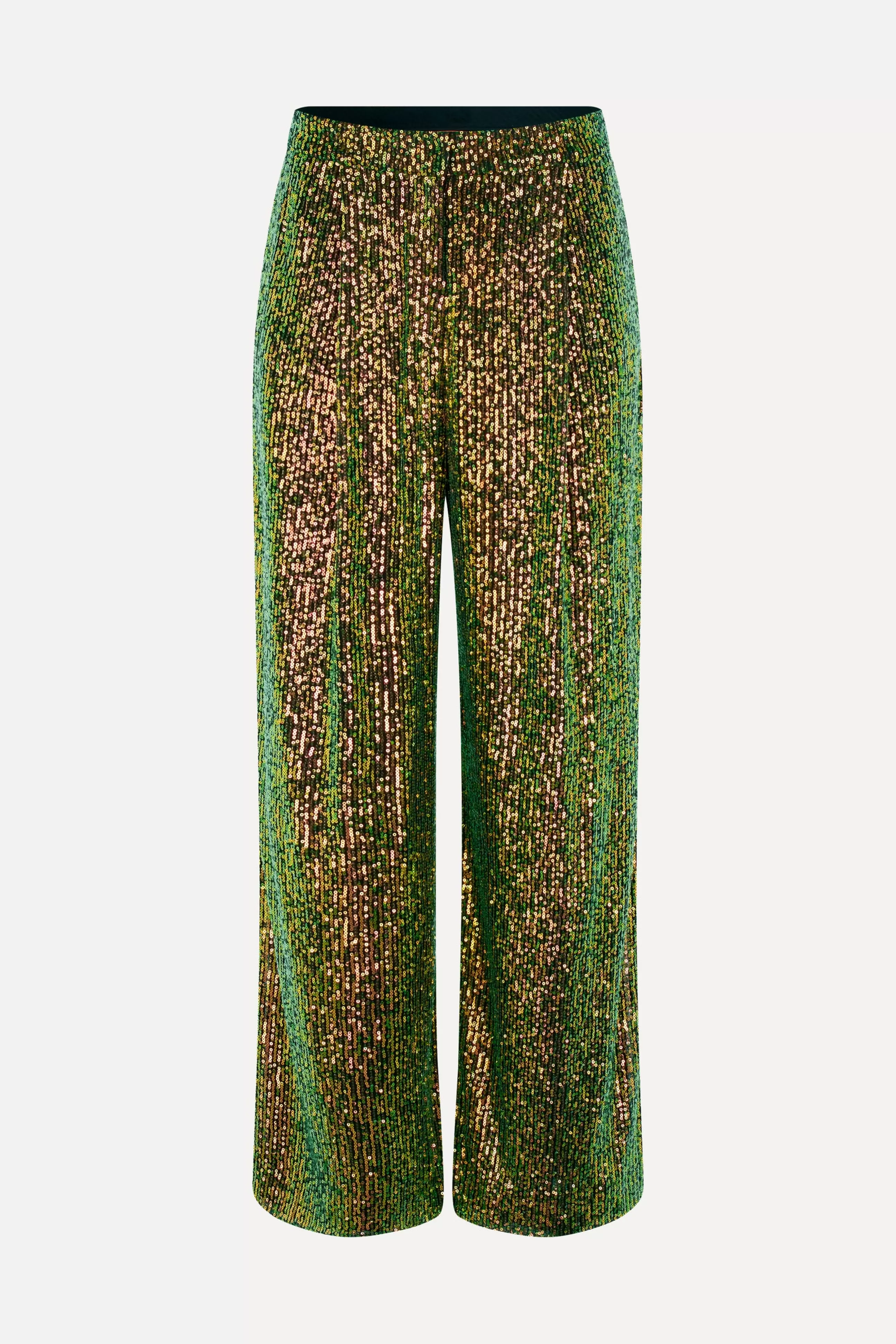 Elegante bukser med iriserende pailletter. Designet i en afslappet pasform med linning med læg og sidelommer.