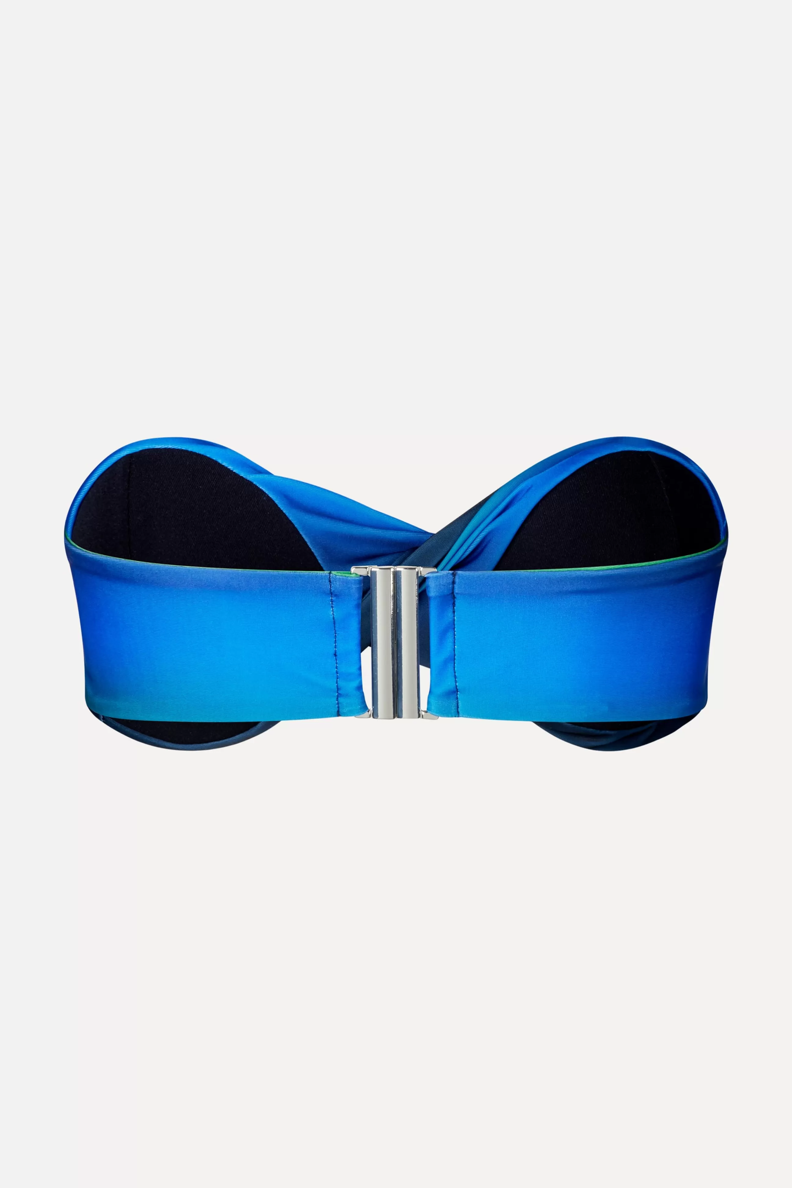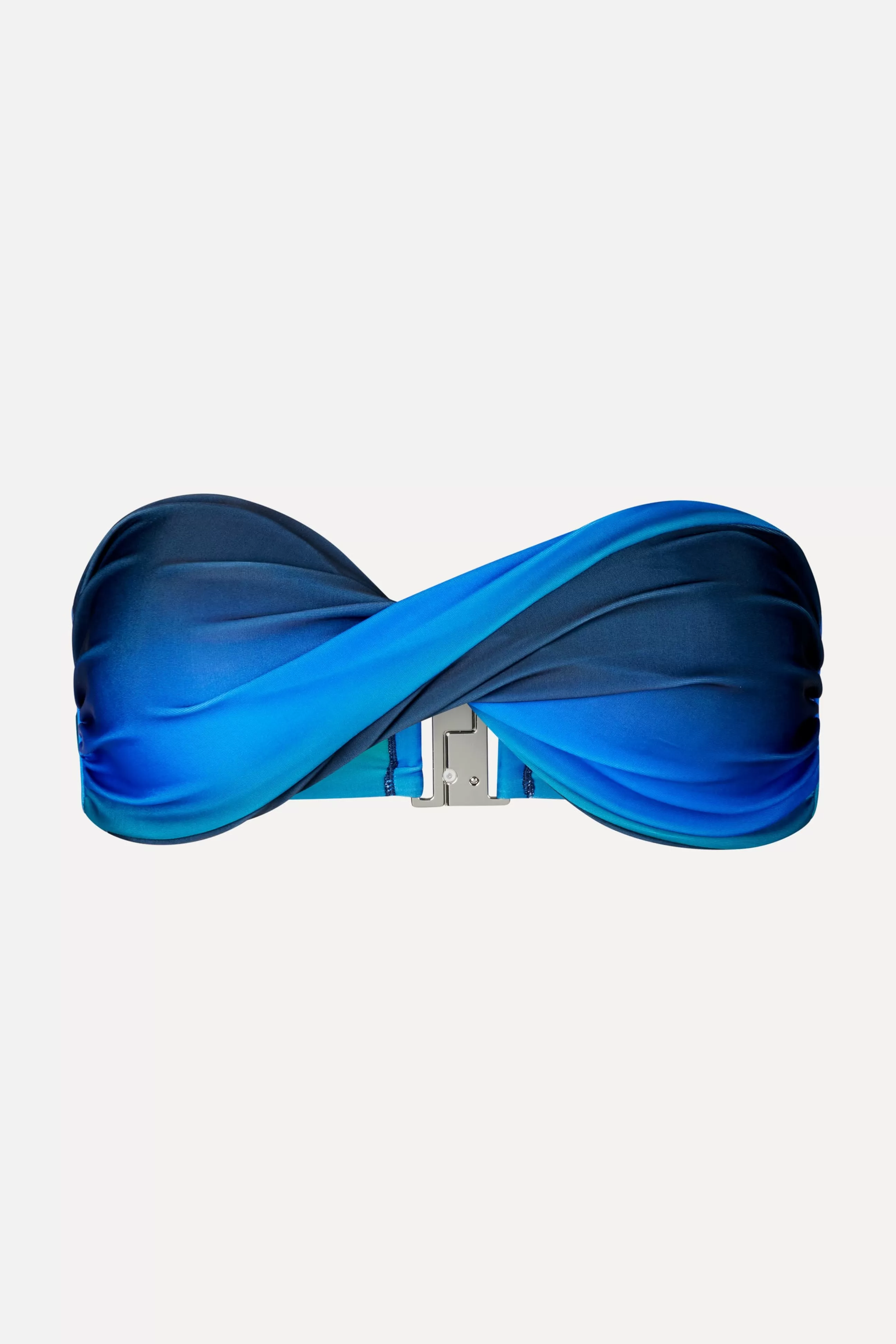 Stropløs bandeau bikini top med flatterende twist effekt foran. Lukkes i ryggen med et metalspænde. Brug den med den matchende underdel.