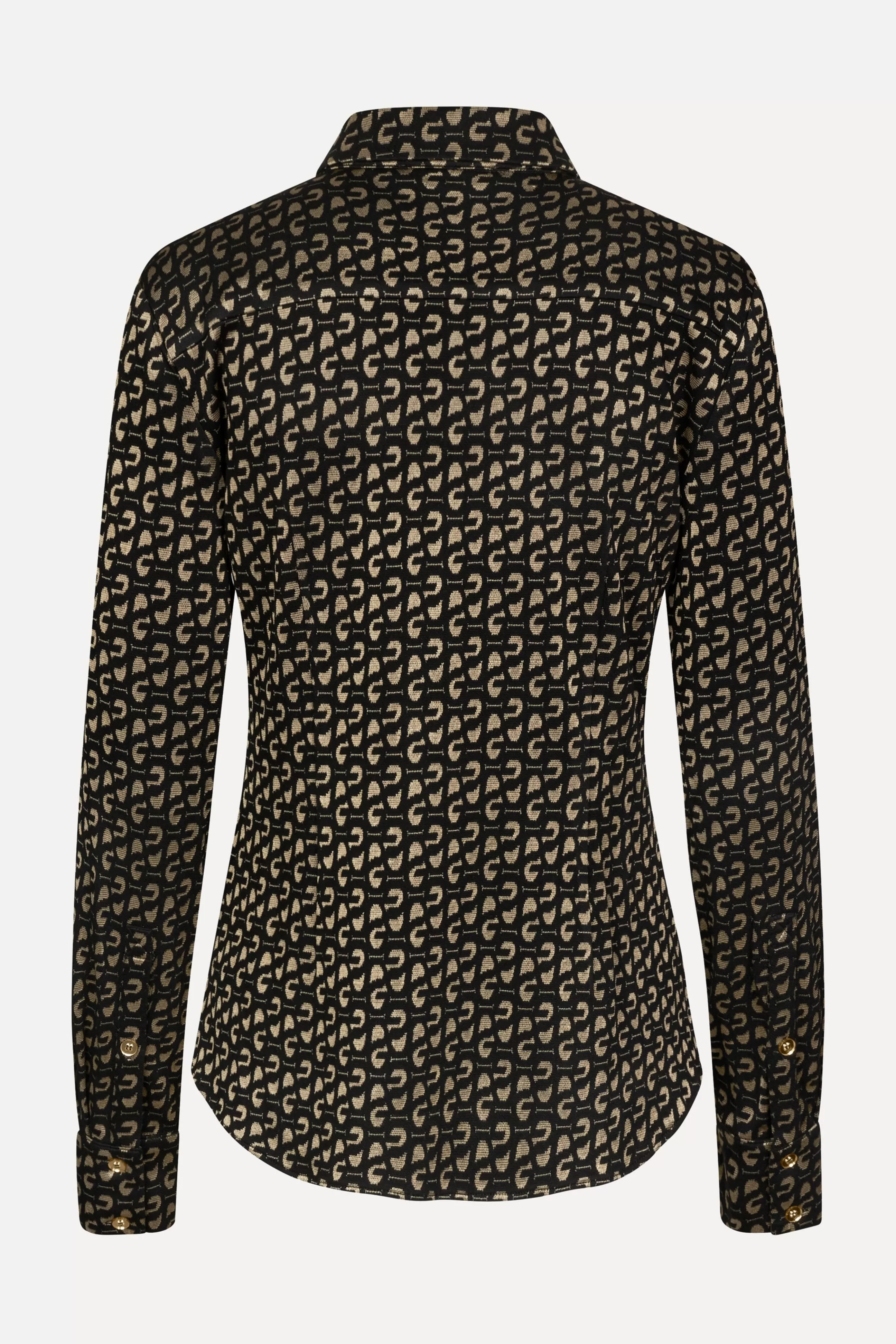 Elegant strik skjorte med krave, lange ærmer og dekorativ knaplukning foran. Detaljeret med metallisk SG logo mønster.