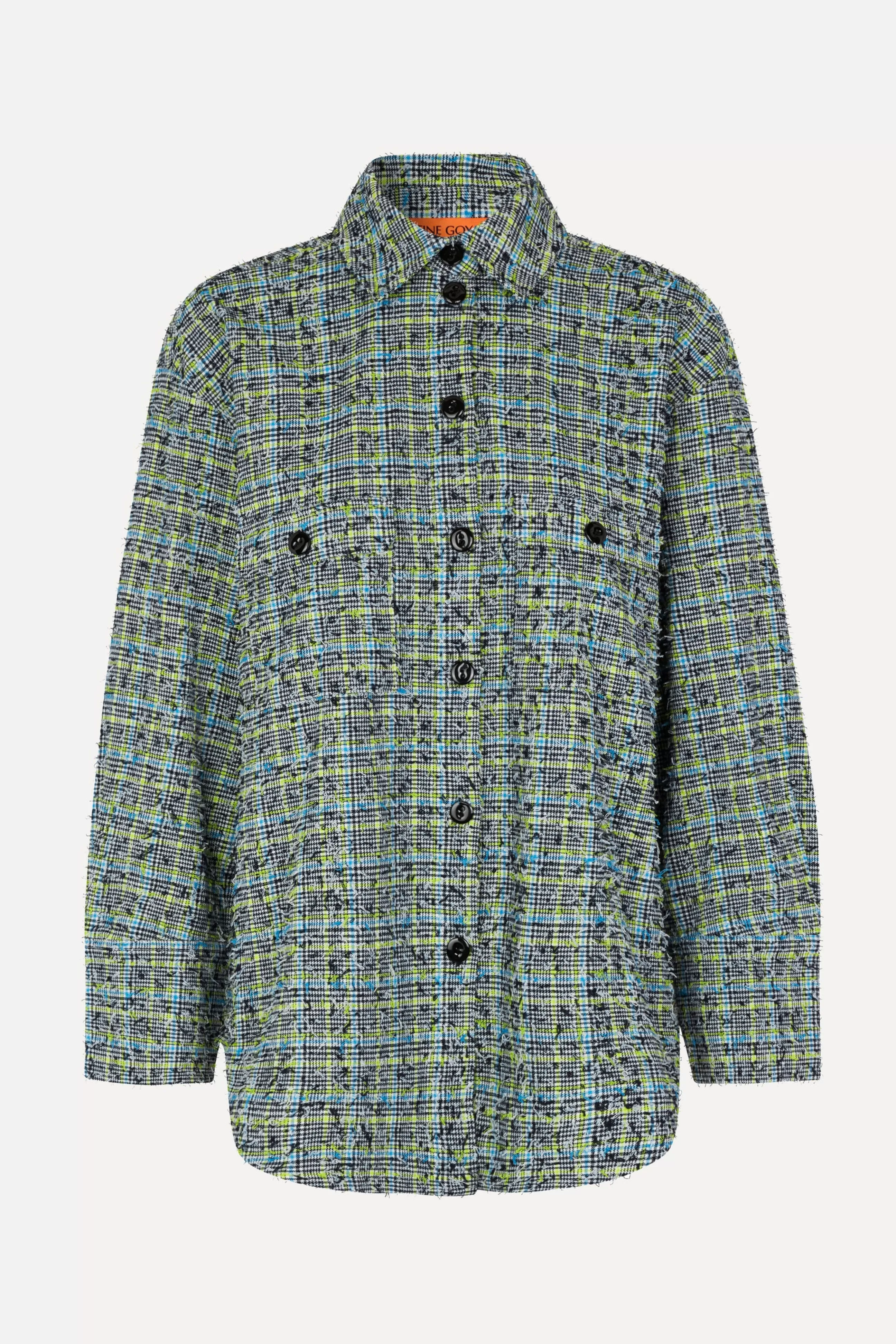 Oversized skjorte i struktureret kvalitet med tern. Detaljeret med knapper, brede lange ærmer og påsatte lommer.