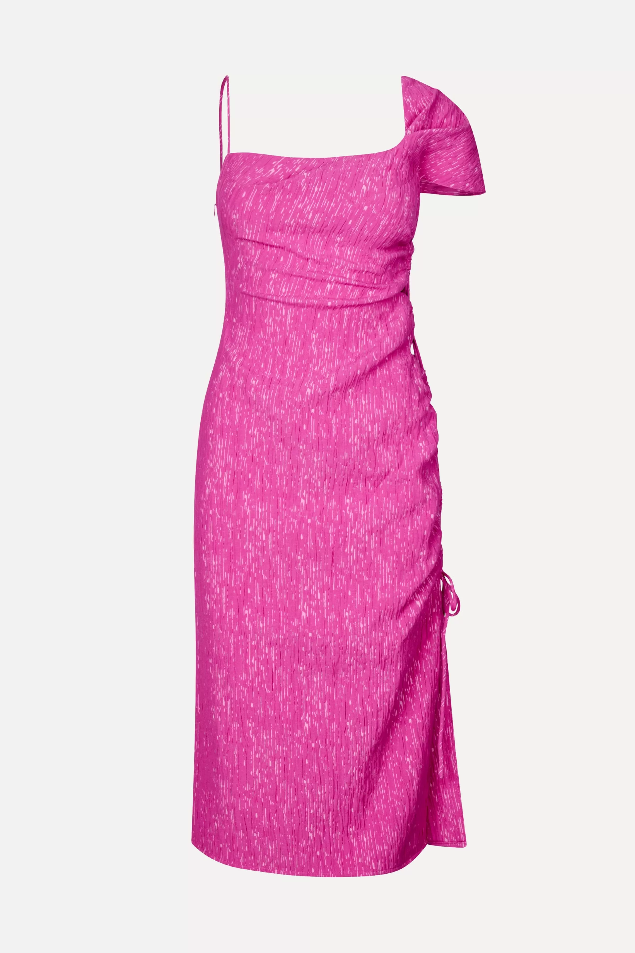 Pink midi-kjole i jersey med kortærmet pasform med én skulder, justerbare udskæringer i siden og slids detaljer.