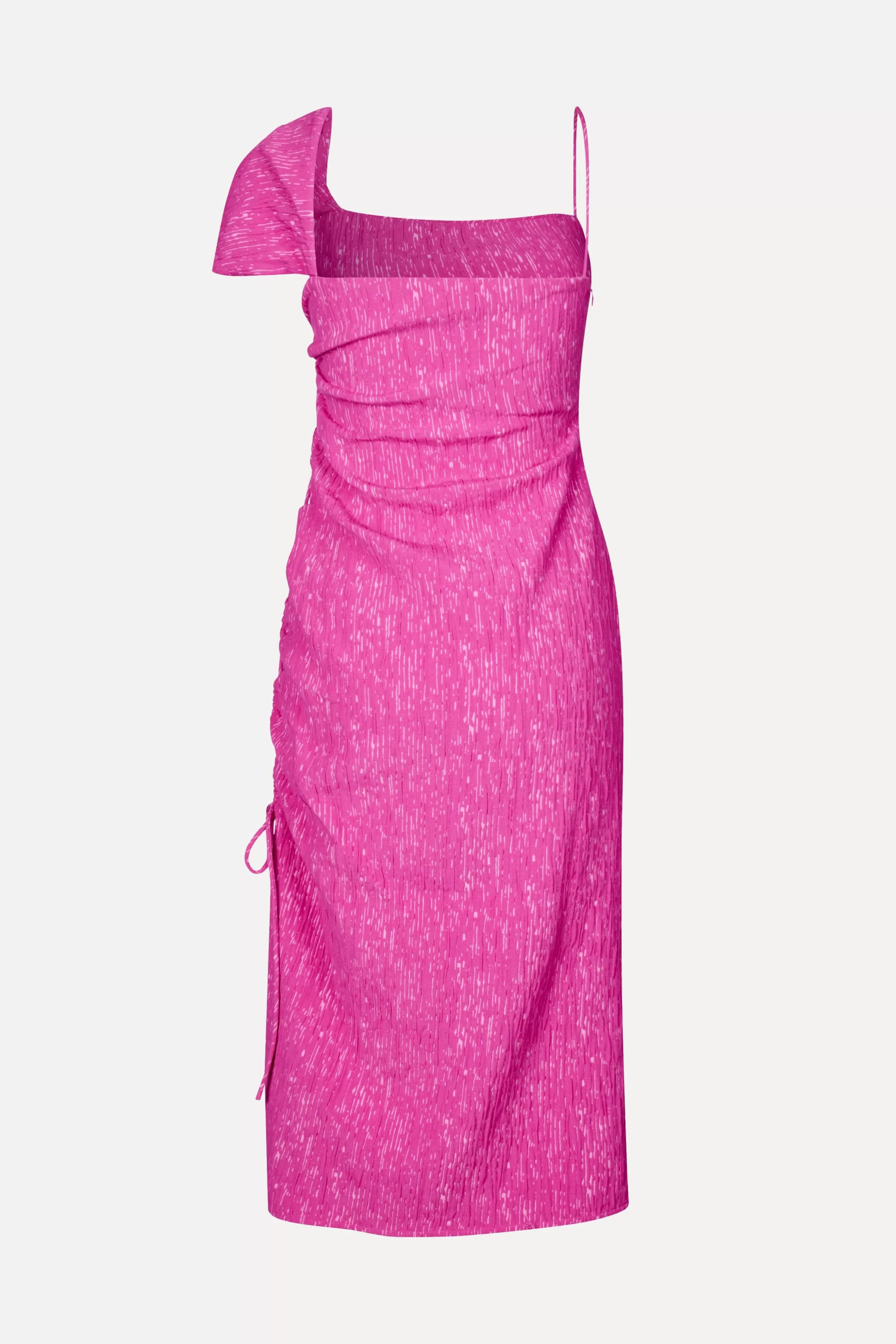 Pink midi-kjole i jersey med kortærmet pasform med én skulder, justerbare udskæringer i siden og slids detaljer. 50% …