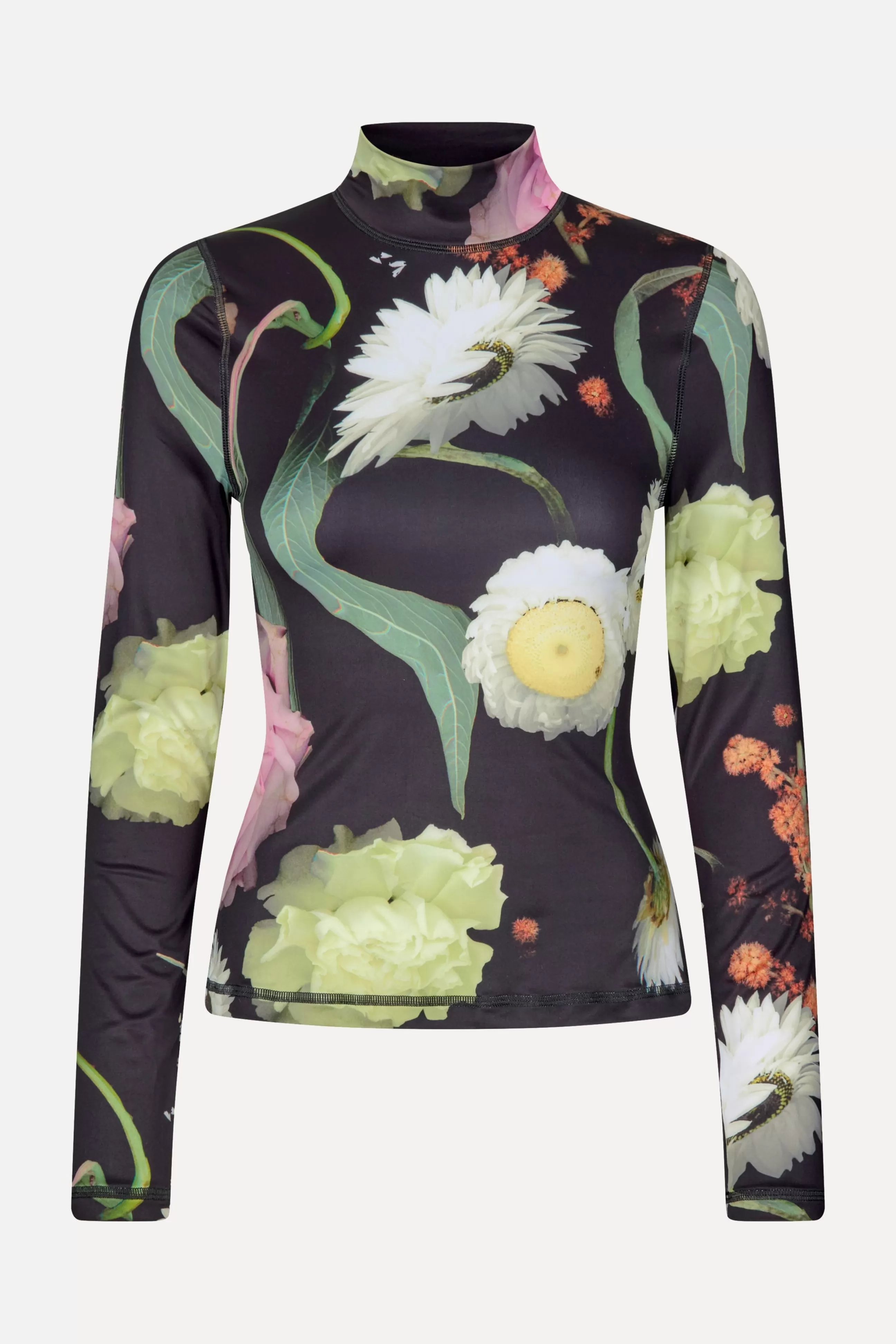 Sort langærmet rullekrave med blomster print. Fremstillet af jersey for en tætsiddende pasform.86% Polyester/14% Elast…
