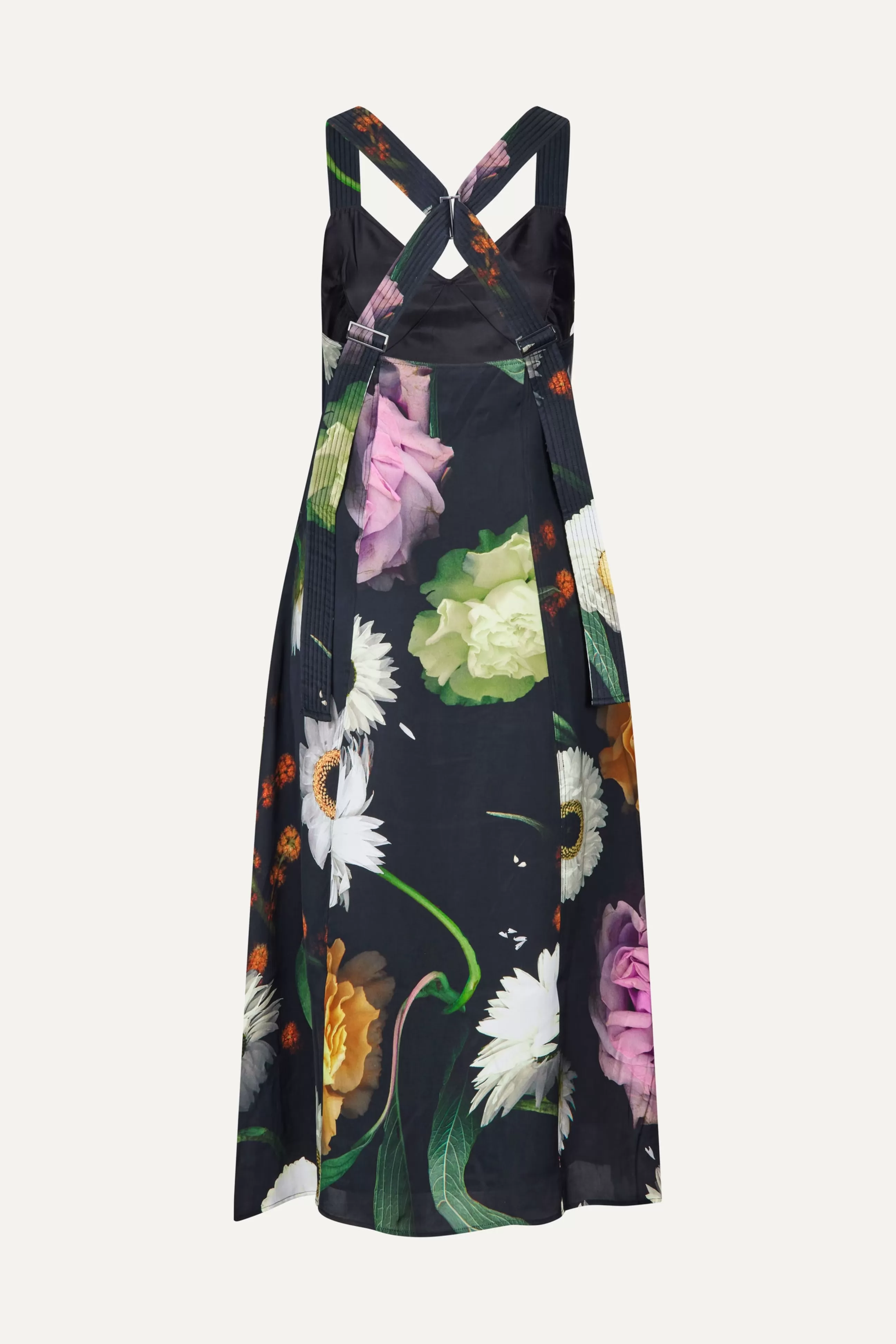 Midi-kjole med blomsterprint i vævet kvalitet af lyocellblanding. Kjolen har en løs pasform med ærmeløs V-udskæring og dyb ryg med brede justerbare stropper.