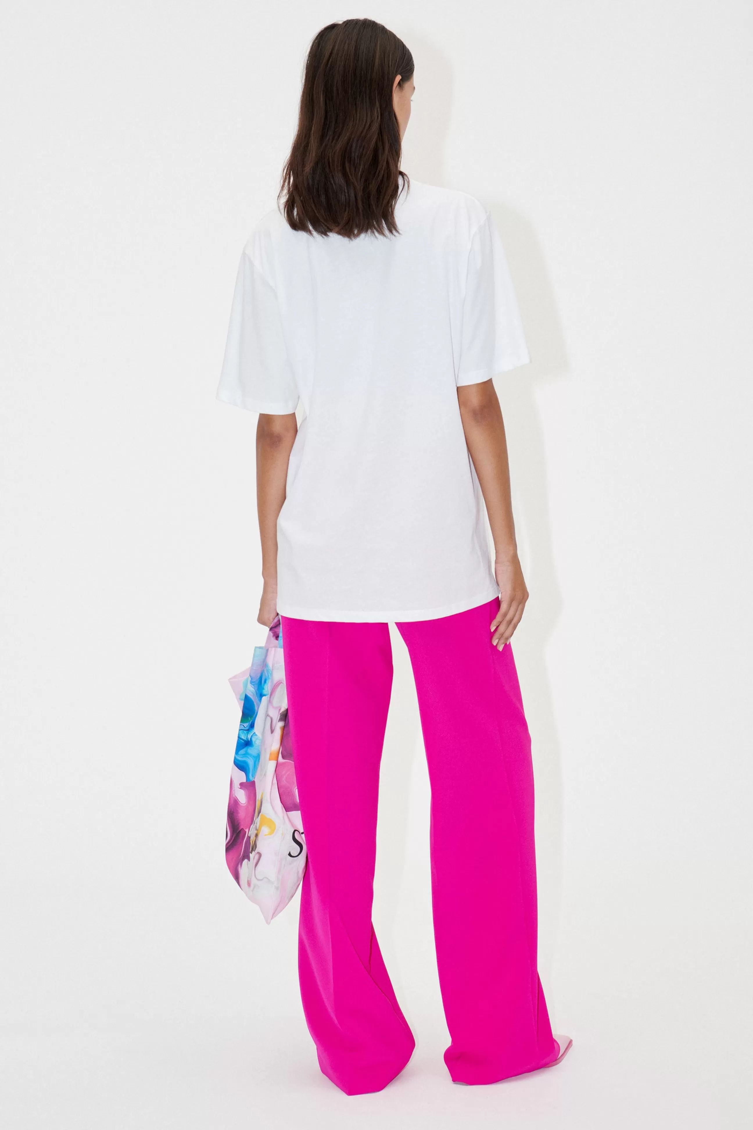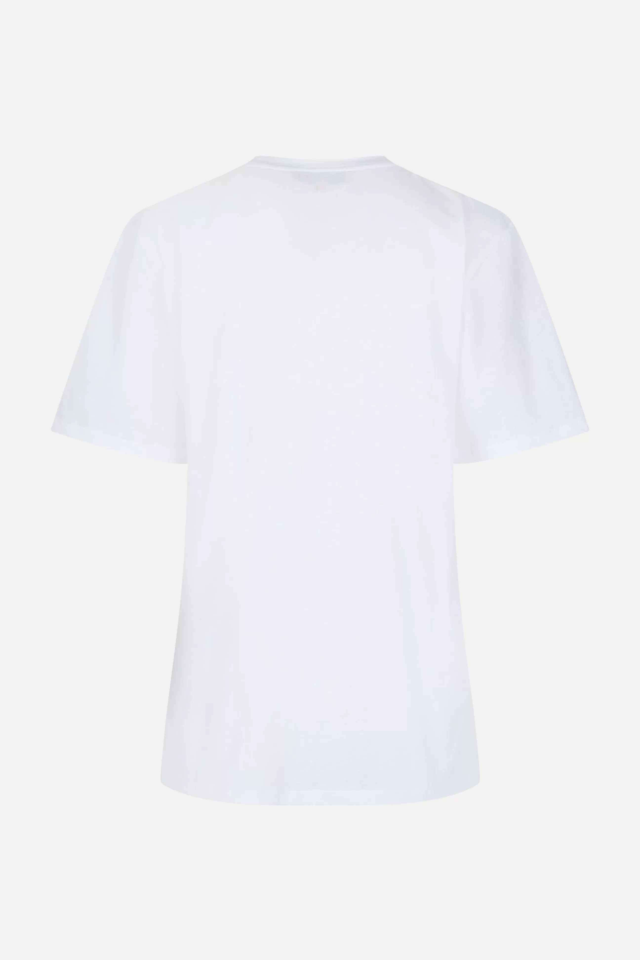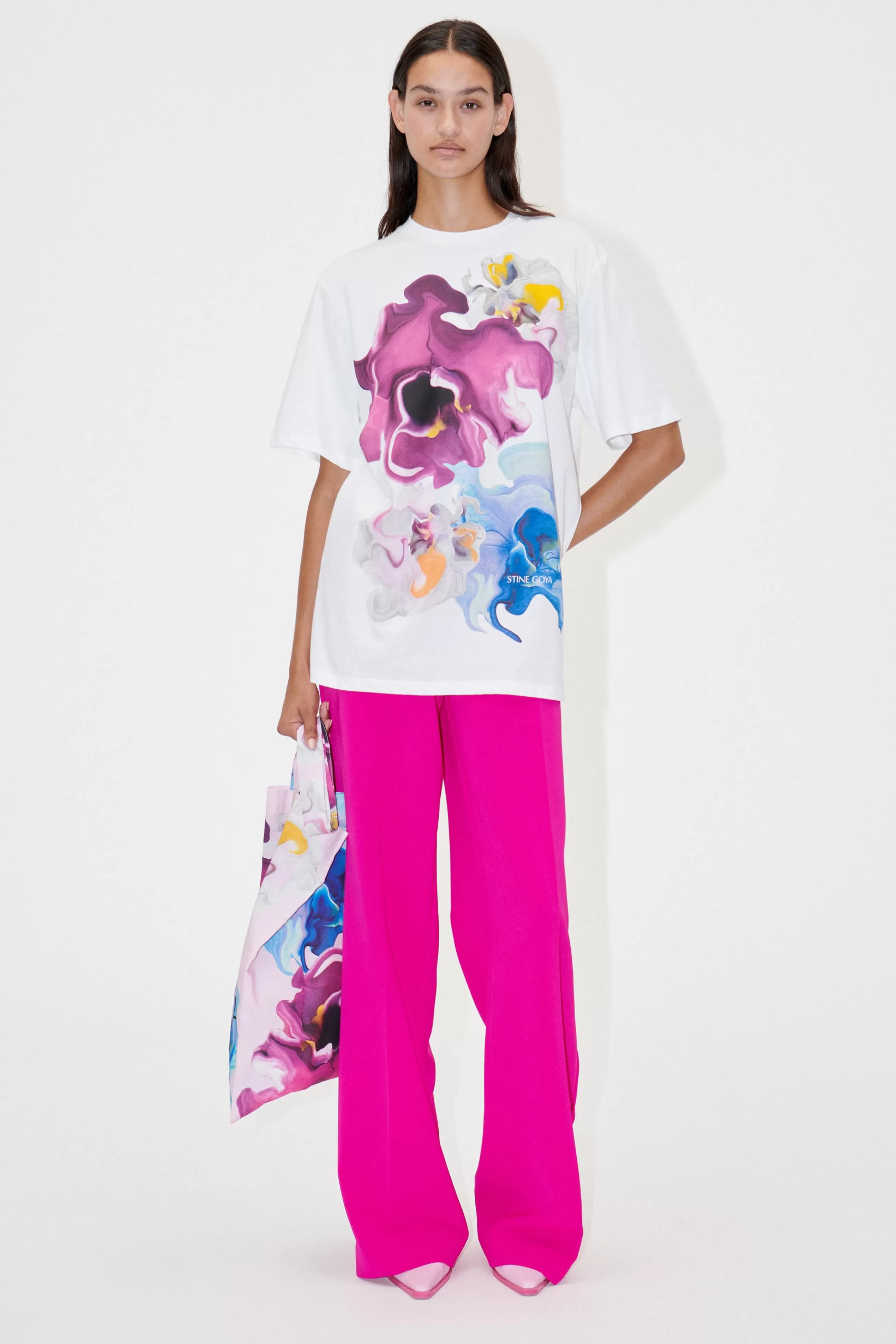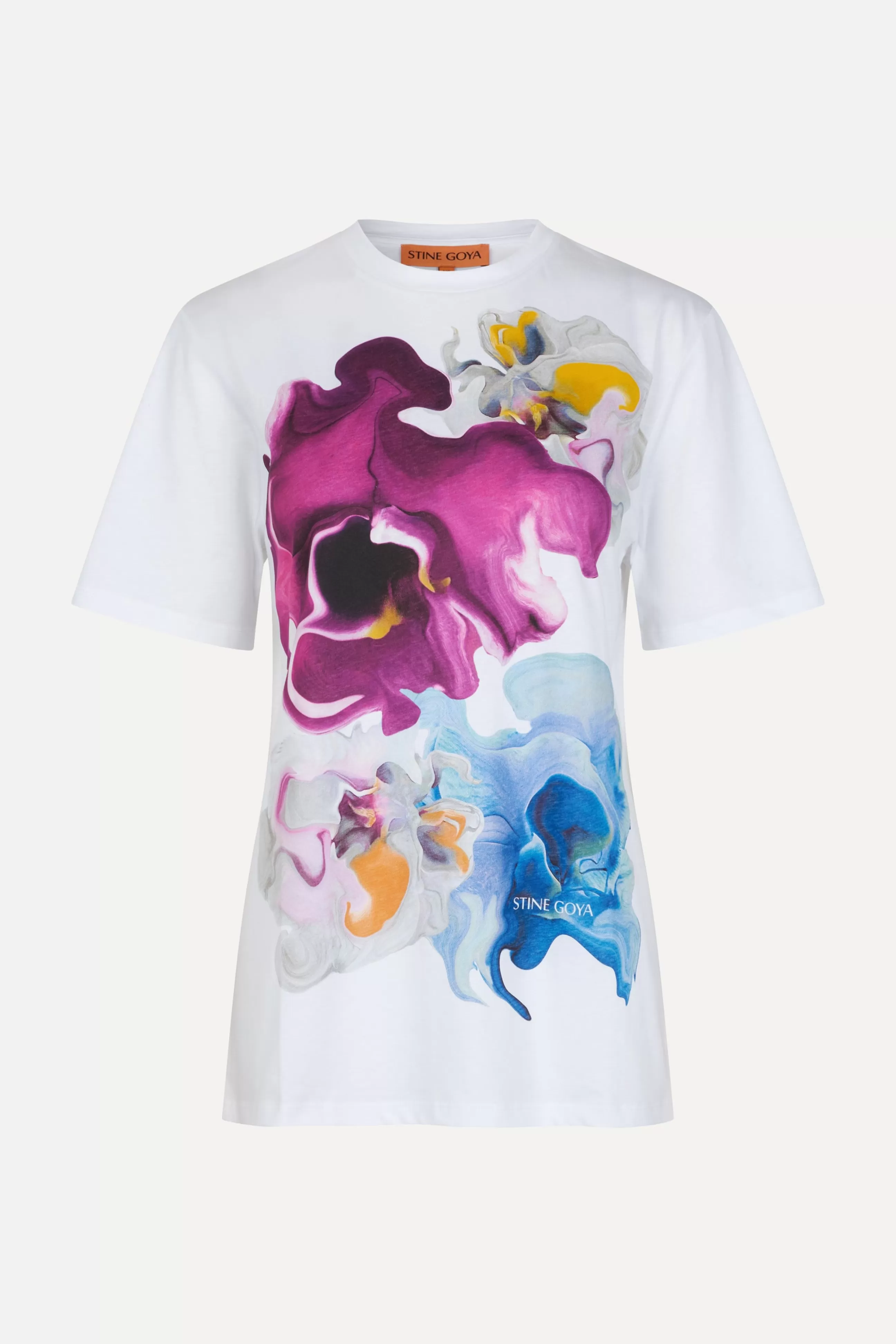 Oversized hvid T-shirt i Økologisk Bomuld med farverigt blomsterprint og STINE GOYA logo. Designet med korte ærmer og rund hals.