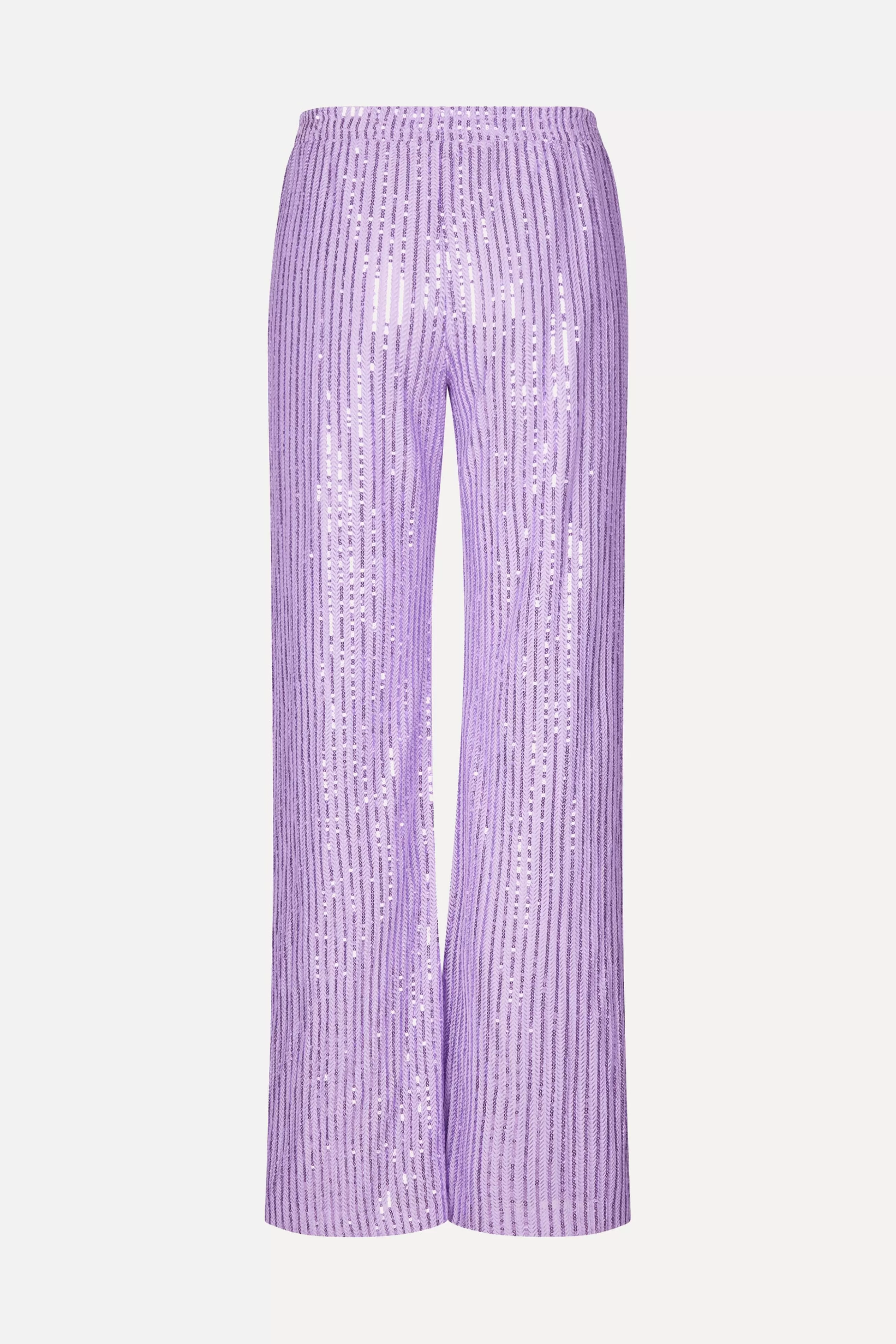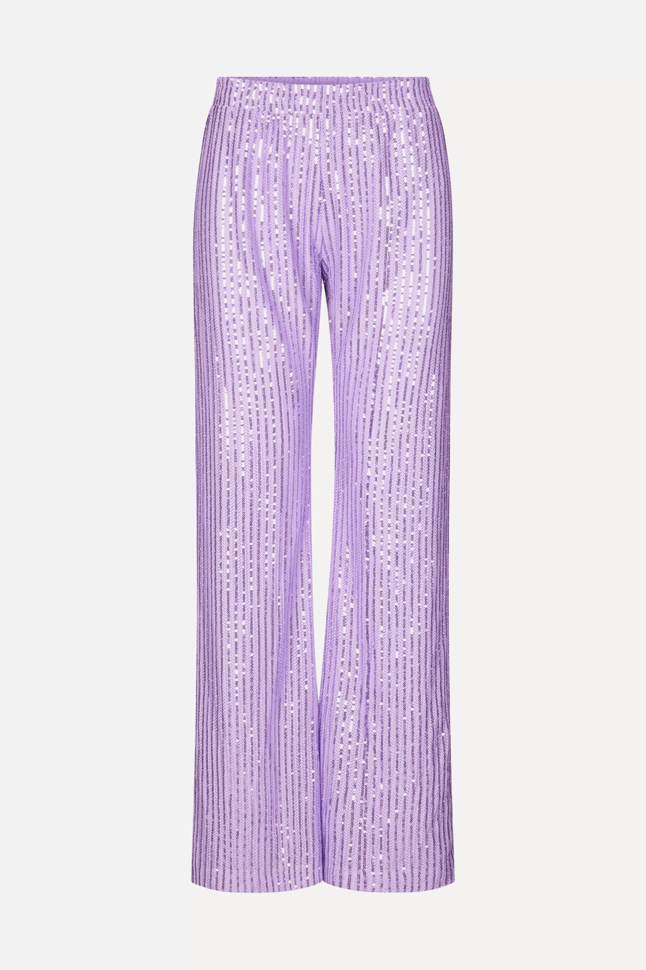 Pailletbukser i en løs pasform med elastik i taljen og lige vide ben. Halvforet for et behageligt fit.