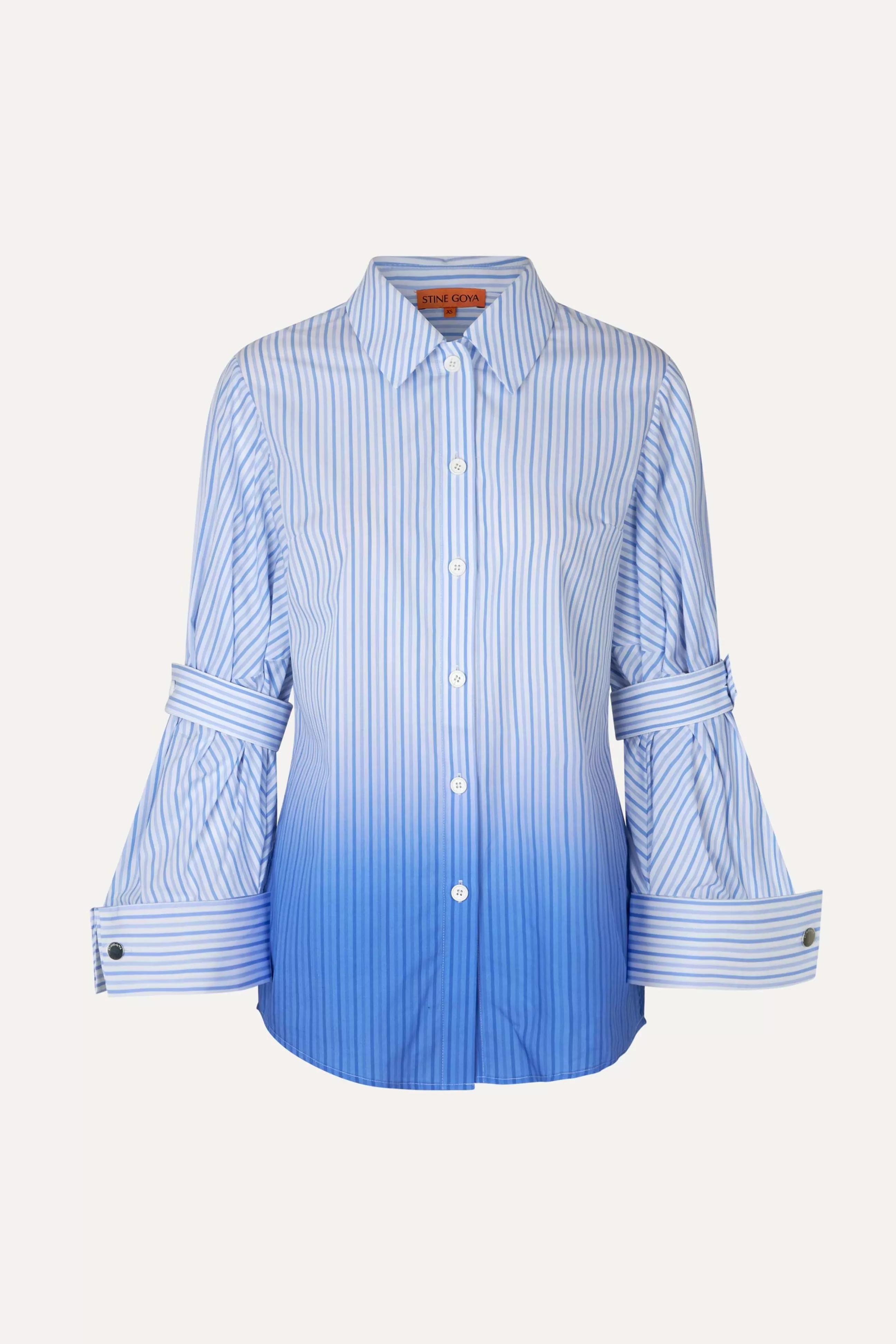 Afslappet bomuldsskjorte med blå striber, knaplukning foran samt lange ærmer med manchetter og aftagelige stropper.