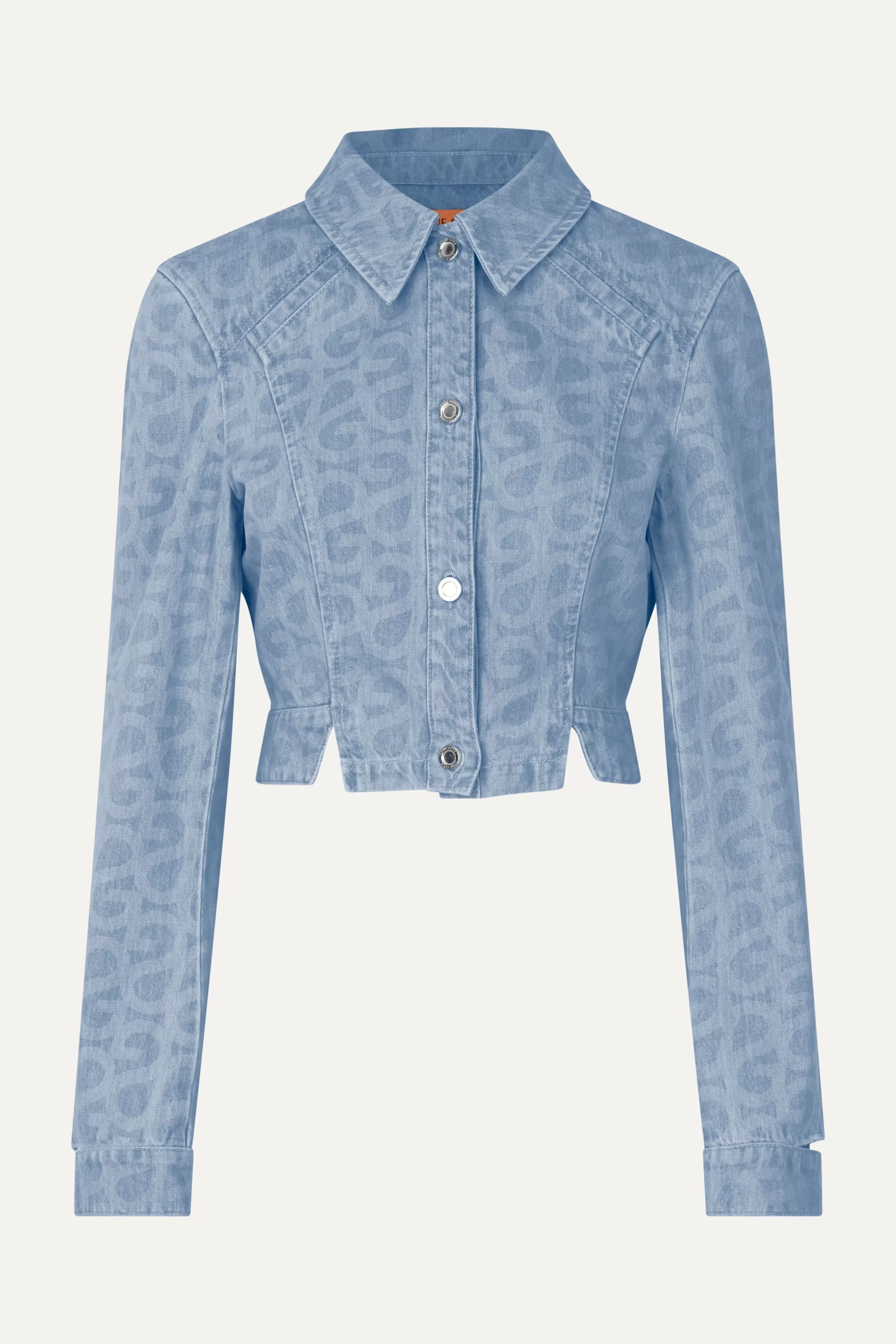 Cropped, langærmet denim jakke med STINE GOYA logo mønster, knaplukning foran, boxy skuldre og udskæringsdetaljer.100…