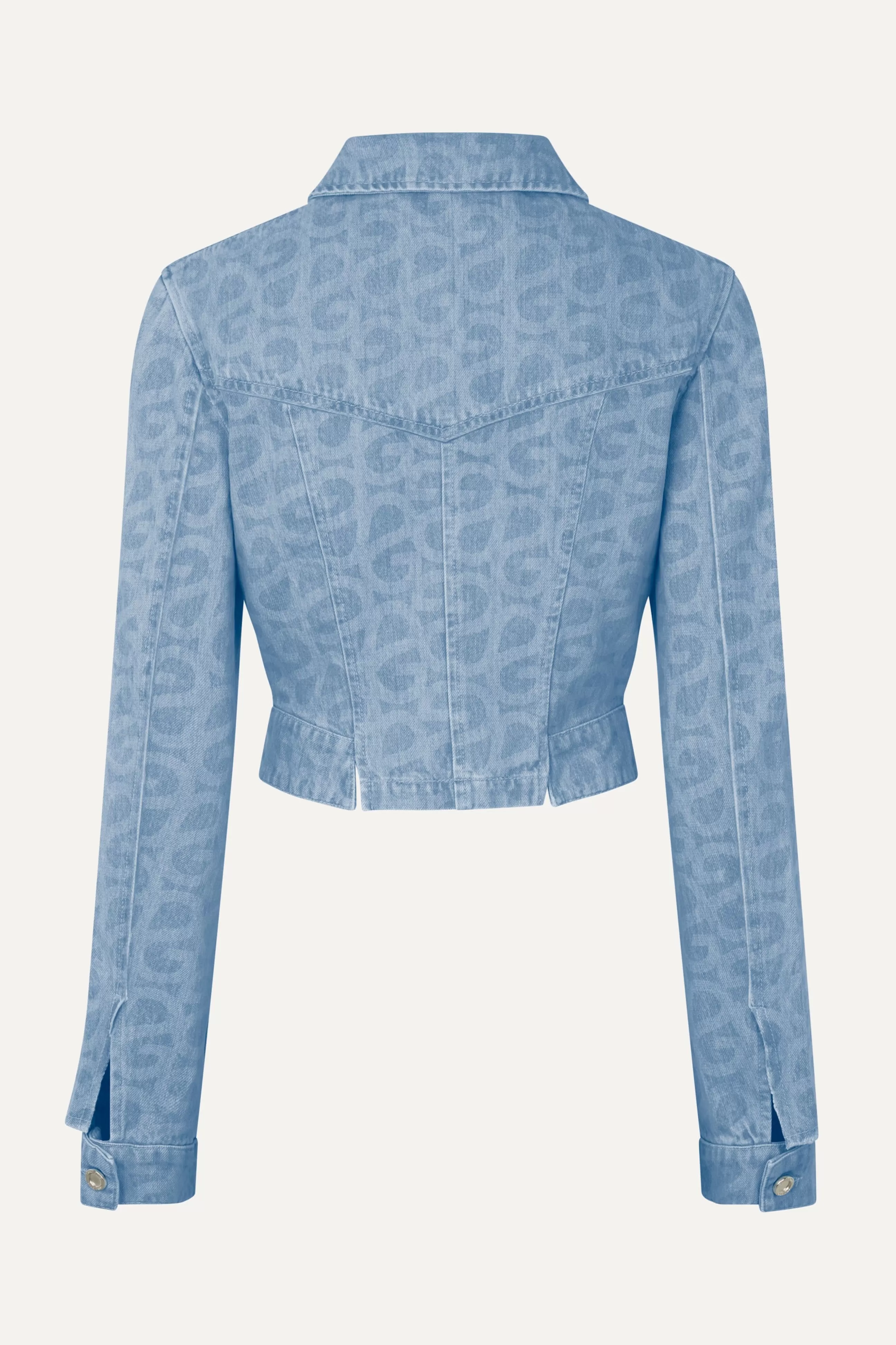 Cropped, langærmet denim jakke med STINE GOYA logo mønster, knaplukning foran, boxy skuldre og udskæringsdetaljer.